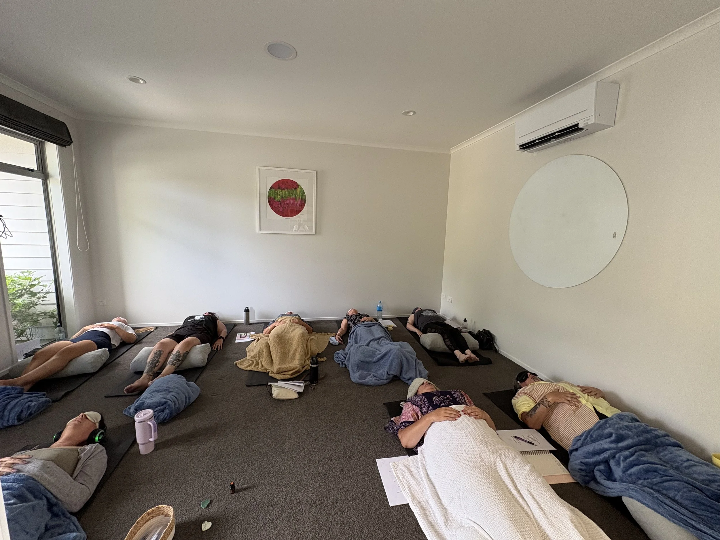 9D Breathwork is a powerful somatic healing practice that helps regulate the NERVOUS SYSTEM and supports both the PHYSICAL BODY and MIND. It combines breathing techniques, frequency energy, NLP subliminal hypnotic therapy, sound healing and personalised guidance.